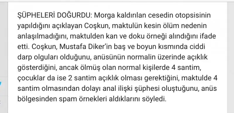 Aynen ben de. Ağladım duşa girdim duşta da ağladım. Kendime gelmeye çalışıyorum.Yorumu görünce okudum haberi. Ateş basıyo suratımı. Kahroldum icim aciyo. Allah bin türlü belalarini versin.