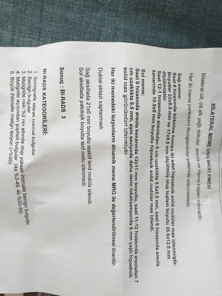 çok teşekkür ederim sağolun inşallah dediginiz gibidir bir sorun yokturBi-rads 3