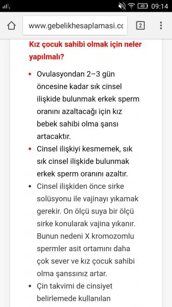 Sirkeli su içeri girmezse faydası olmaz sanırım korkma sirkeden bak böyle oğlana meyilli erkeklerin spermleri çok güçlü ve baskın oluyor biraz. Kaliteyi düşürmekte yarar var sankiCanım ben söyle yaptım vajinal duş yaptım ayakta şırınga ile sonra eşimle münasebet oldu dışarı boşaldı 25 dk falan sonra tekrar oldu bu kez içeri boşaldı