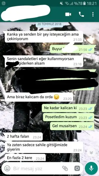 Burda derdinizi paylasmissiniz, lütfen mutlu sonla bitirin bu konuyu. Sandalet hazir indirime girmisken,numaraniz bitmeden almasi gerekiyor. Maddi imkanini kendisi bastan dusunecekti. Sizin sandaletinizi giymesi cok mu elzemdi. Emanete hiyanet etmis resmen