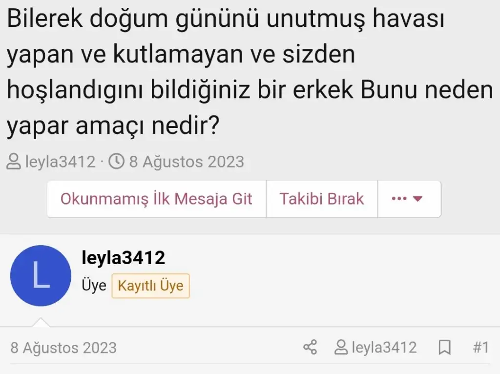 Konu başlığı erkekse Rainy de olabilir hemen şey yapmayın. Konu başlığı şiir gibiyse Leyla'dır.Bir gün yeni bir üyenin "bir erkek neden hoşlandığı halde suratımıza bakmıyormuş gibi yaparrr" konusu açtığını görürseniz anlayın ki Leyla aramızdahatta ipucu vereyim: konunun başlığı "bir erkek..." olarak başlıyorsa konu sahibi Leyla,