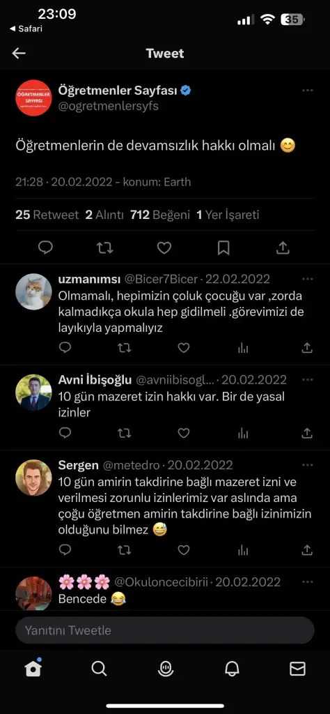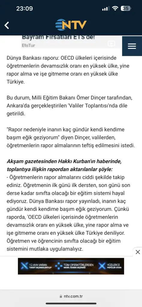 Tmm cnm öyle biseu yok. Milli eğitim bakanı yalan söylüyor. Dünya bankası raporu en cok devamsızlık yapılan mesleğin de öğretmenlik oldugunu rapor ediyor. Amaa aaa olur mu onlarda kimmis. Kk daki kadınlar herseyi bilir… ya rica edeceğim beni etiketlemeyin. Kendi kendine konus. Hatta meb e yaz sikayetini bu haberler neden cıkmıs, haberi yapanı da sikayet fln et ok hadi