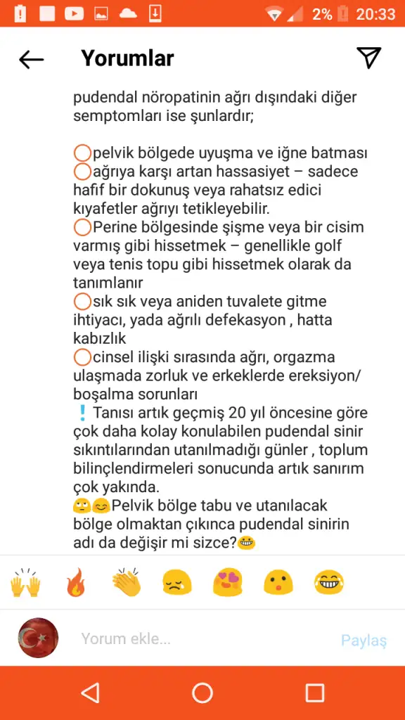 Aslında yazdıklarım yaşadıklarımın yarısı bile değil, dahası var. Ciddi pelvik taban bozukluğu yaşıyorum. Hem koksiks kırık, hem belimde fıtıklar var, hem de menopozun etkilerini fazlaca hissetmeye başladığım bir dönem, hareketsiz kalmam , hepsi pelvik kaslarımı etkiledi. Bunun bütün sonuçlarını yaşıyorum, buraya yazmayacağım. Geçen sene nisan ayından önce ben ne kabızdım, ne pelvik kas sıkıntım vardı, ne midem barsaklarım ağrırdı, ne belim boynum bu kadar ağrırdı.