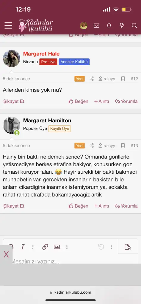 Margırıt’ın yorum bildirimini görünce aklıma sen gelmiştin. Aklıma gelen başıma geldisskdjjdjdUff margaretler siz benm bu forumda ki sınavım mısınız acabaa smdide alt alta yorumlarkarstrcam diye gorhumdan yazamiyomm
