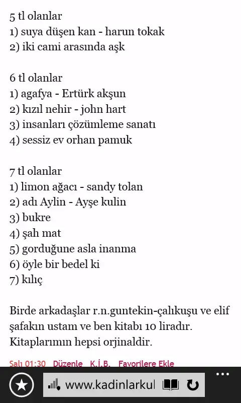 Kadıköye yakın bir yerde oturuyosan akmar pasajında bulabilirsin... Bende dolabımda artık yer kalmadığı için geçenlerde gittim sattım. Dun arkadaşlara verilecekleri ayırdım. Yine bir poşet ayırdım gidicem kadıkoye :) Avrupa yakasında oturuyosanız bryazıtta varmış sahaflar... Ayrıca 25 ekime kadar uskudar sahilde 2. Sahaf festivali var ilginizi çekerse :)çok iyiymiş...keşke burdada olsa.belki vardır da ben bilmiyorum,araştımam lazım..ben marketten alıyorum ve gerçekten pahalı