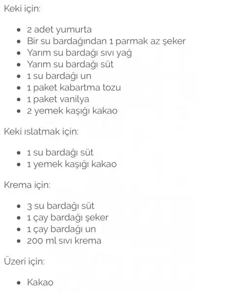 pazar aksamından benım hep yaptgm bı pasta var onu yapabılırsın canım gercekten ck guzel oluyo altı kakaolu kek ustu krema begenmeyen olmadı smdıye kadar