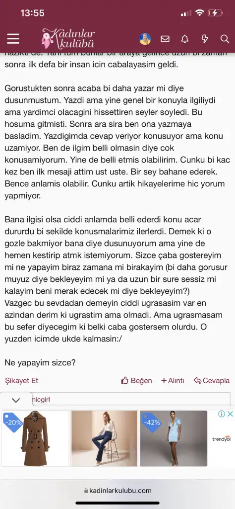 Ayrıca sadece size özel olduğunu düşünmüyorum bu gönderilere yorum kısmının. Erkekleri hiç tanımıyorsunuz. Ben olsam ondan bir adım beklerim. O teklif etmeli, siz zaten bir adım atmışsınız.
