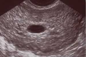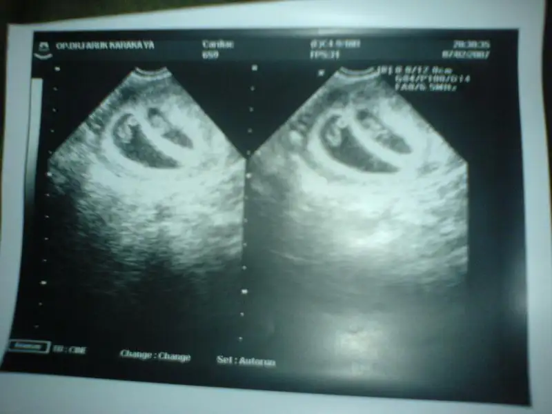 Bir de artık kesenin içinde bebkler görünüyor;bu resim en az sekiz dokuz haftalıkkken olsa gerek!İlk gittiğinde de iki keseyi de görmüş mü boşken?