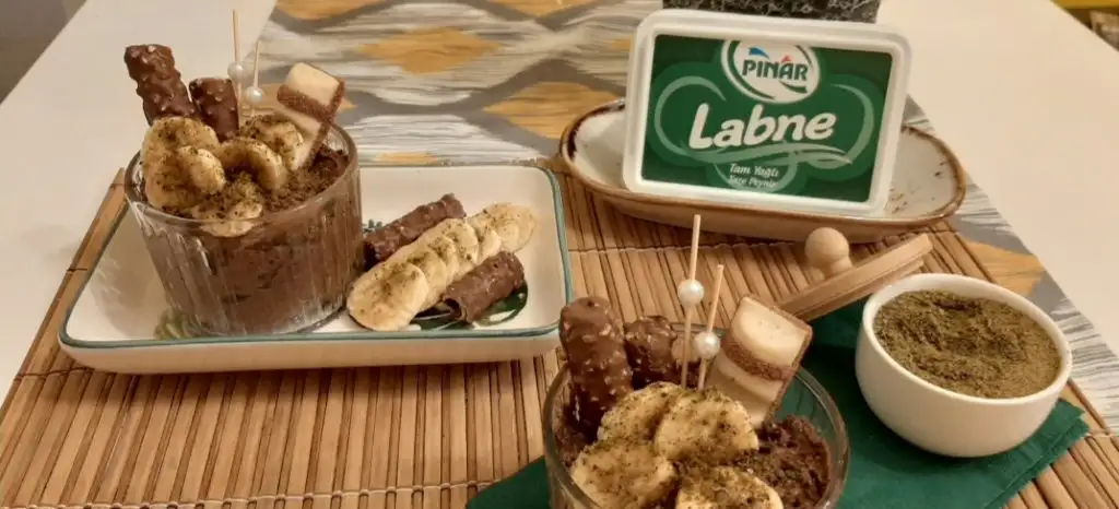 Bisküvileri rondodan geçirip kum haline getiriyoruz. Daha sonra labneyi döküp karıştırmaya devam ediyoruz. Muzları da ekleyip mousse kıvamı aldığında isterseniz sıkma poşetinde, isterseniz de kaşıkla kaselere döküp servis ediyoruz. Süslemesi de size kalıyor, işte bu kadar basit!
