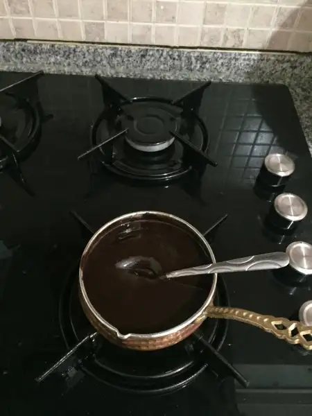 Browni kısmı için tereyağı ocakta eritilir ve içine iki paket bitter ilave edilip eritilir ve ılımaya bırakılır