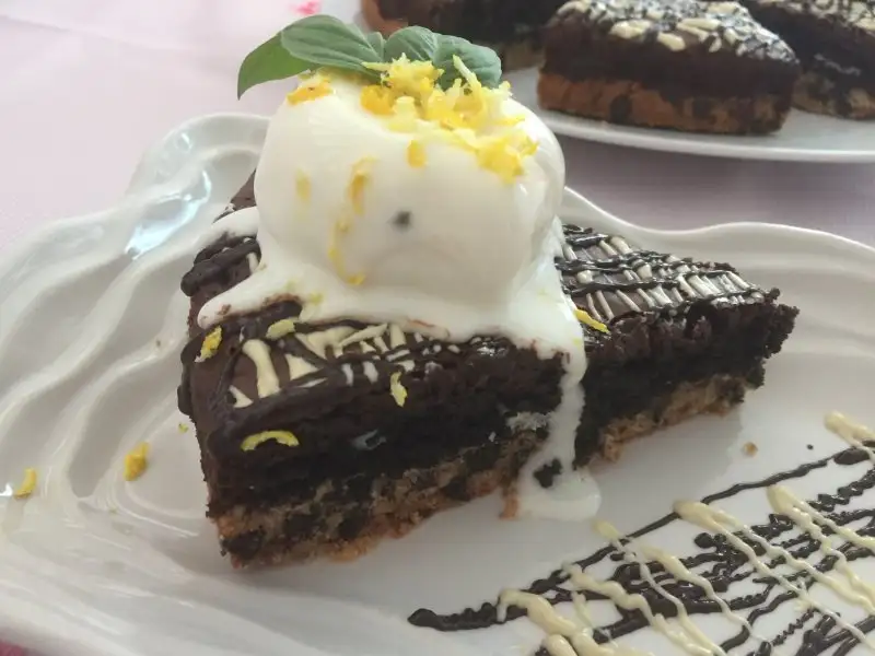 İçine erimiş çikolata ilave edilir karıştırmaya devam edilir ve un vanilya kakao tuz ilave edilip browni de hazır edilir