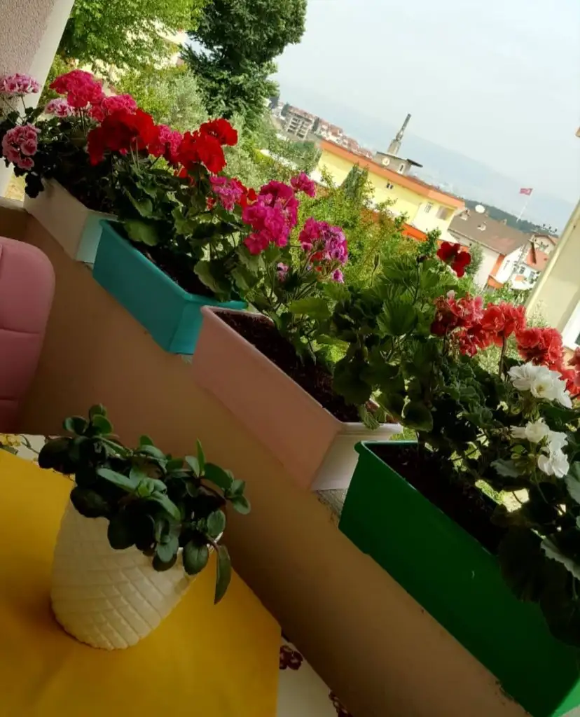 -beşinci fotoğraf Ceylan gözü Sardunya gecen aylardaki balkon çiçeklerim su an o hallerinden eser yok çoğu soldu şimdi filizlendiler yine. Bi daha aliy miyim hayır seneye balkonu petunyalarla doldurcam