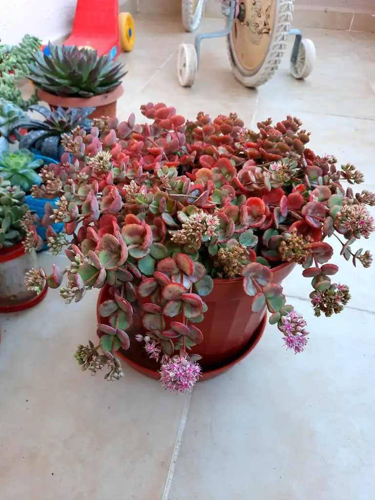 Bu çiçeğin adı sedum sieboldii, anne çiçeği diye biliniyormuş. İlk resimdeki aralık ayındaki hali, saksısı küçüktü, bu yıl elimdeki 10 litrelik saksıya geçirdim. Bolca da su verdim, bitki geçen tılki halinin 3 katına çıktı neredeyse, elinizde bu bitkiden varsa bitkinin kalıbı için mantıklı olan en büyük saksıya alın ve toprağının hep nemli olmasını sağlayın, inanılmaz bir büyüme gösteriyor.