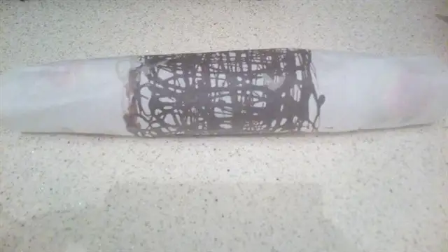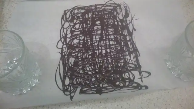 Bir miktar su ısıtıp 1 paket bitter çikolatayı benmari usulü eritiyoruz. Ben azıcık desen yapıp diğerini de pastanın ortasına kullandım.