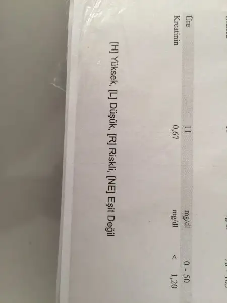 Sadece bu kağıda bakıp söyledi Can'ımfakat değerleriniz normal gözüküyor, kreatin de üre de...zaten bunlardan ziyade farklı değerlere bakmak lazım enfeksiyon için kreatin tek başına enfeksiyon demek için yeterli değil. sanrm muayene veya kan tahlilinden yola çıktı doktorunuz