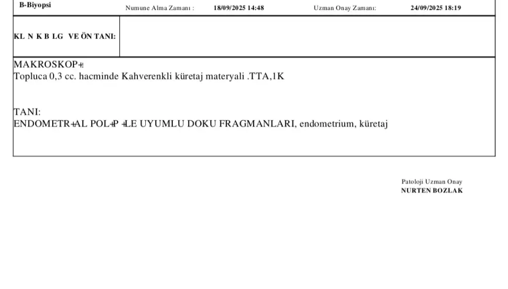 Rahimden parça alındı ve patoloji sonucu iyi mi kötü mü anlayamadım yardımcı olabilir misiniz