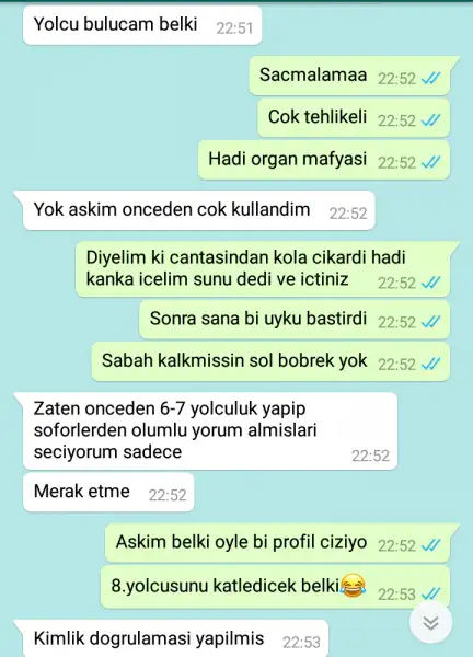 Bu uygulamadan eşime “Ne güzel hem yola arkadaş bulmuş oluyorsun Hem de masrafı bölüşüyorsun , araç sürmeyi bilen ehliyeti olan biri olsa sürücülük işi dahi paylaşılabilir” diye bahsettiğimde eşim beni neredeyse arabadan atıyordu