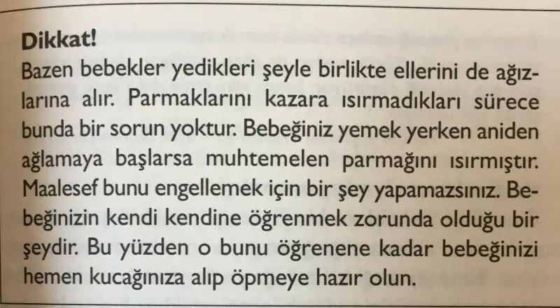Ben yarısına falan geldim. Diğer kitaptan daha farklı bakış açıları var. Kültür farkından kaynaklı sanırım. Üç gün kuralı için bebek alerjik değilse gerek yok diyor. Prematüre bebekler (erken dönem) için başlangıçta önermiyor. Diğer grubun aksine 6 ay dolunca kaşıkla başlayın düzeltilmiş ayını yakalayınca blw başlayın diyor. Biraz farklı yaklaşımlar var. Okumakta fayda var diye düşünüyorum.Haftasonu sırf bu kitabı almak için zincir bir kitapcıya gittim ama yoktunetten sipariş vereyim bari.