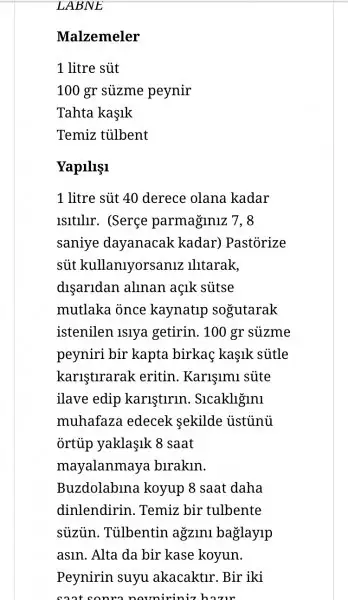 Lor peyniri, labne hepsinin tarifini aldım isteyen olursa kopyalarım buraya da