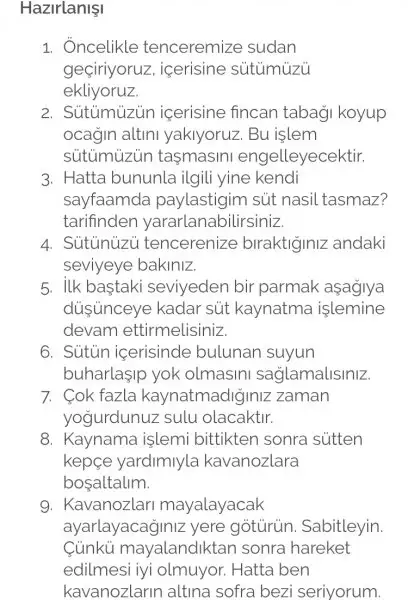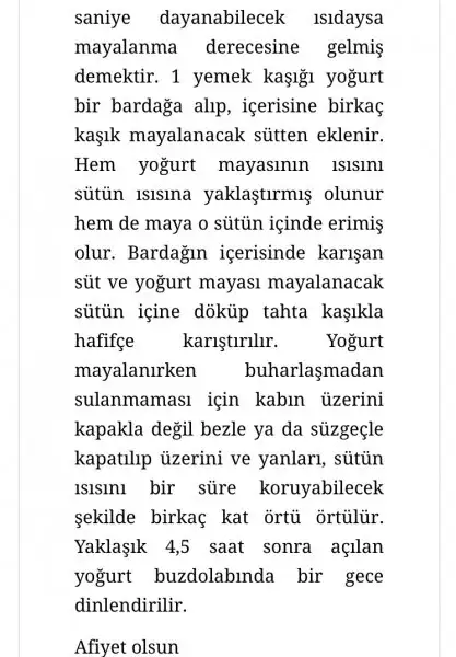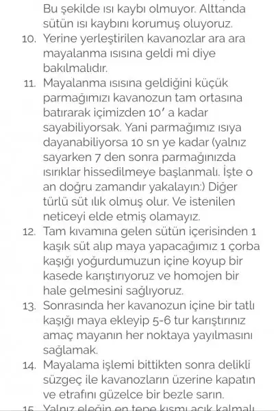 pastörize süt kullanıyorsanız ılıtarak, dışarıdan alınan açık sütse mutlaka önce kaynatıp soğutarak istenilen ısıya getirin. Bu kısmı anlamadım tam ??????