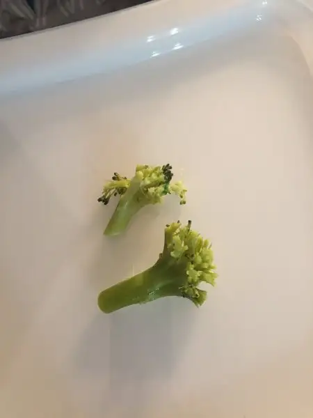 Çiçek kısımları ağıza yapıştığı için daha zor oluyormuş grupta +8 tavsiye ediyorlar. Buharda haşladım. Sap kısımlarını daha rahat yedi. Hem de daha az gaz yapar diye düşünüyorum.