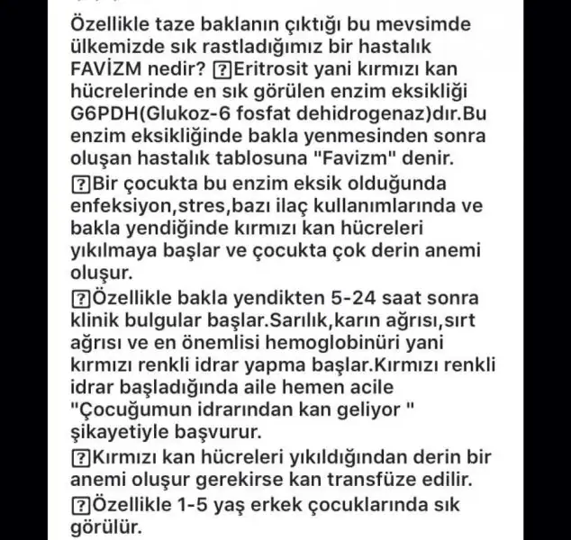 Favizm deniyor. Bakla çok tehlikeli. İki görsel ekliyorum lütfen okuyun.