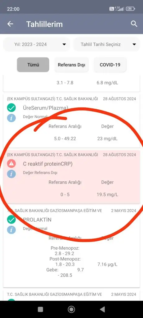 C crazygul Üye Kayıtlı Üye 14 Şubat 2023 26 5 16 29 28 Ağustos 2024 Konu Sahibi Konu Sahibi crazygul #1 Merhaba kizlar böbrek ağrısı şikayetiyle doktora gittim tahlilimde bır yükseklik var başına gelen varmı bir sıkıntı varmı acaba Eklentiler IMG_20240828_220132.webp 24,4 KB · Görüntüleme: 104