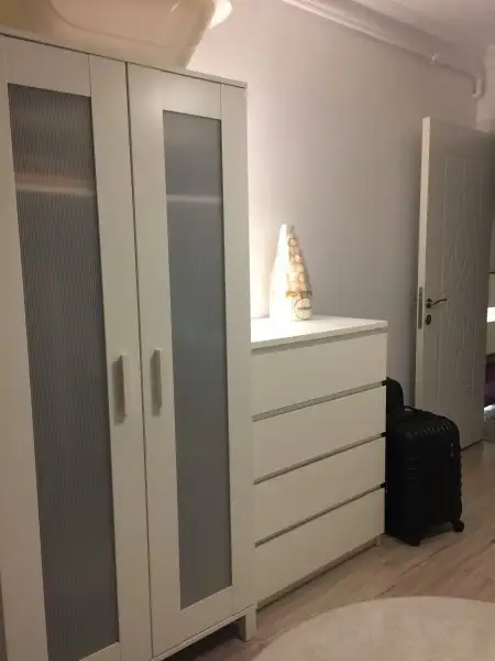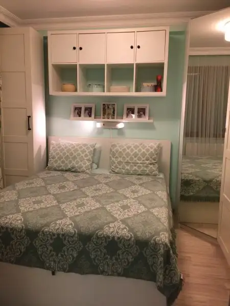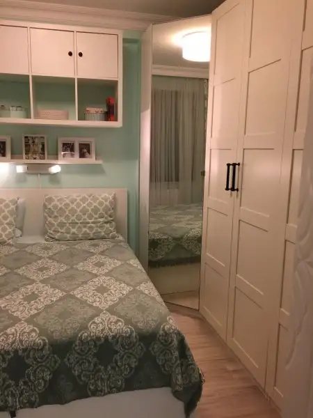 Yatak odam eski evimde 18 m2 ydi. 7 kapili gardrop makyaj masasi giyinme bolumu kitaplik... bir suru yer vardi ama bu evde odaya yatagi koydugumuz an oda bitti:) ust kattaki bos bir odayi giyinme odasi yapmayi dusundum ams in cik zorlayacagi icin sigdigi kadar buraya koymays calistim. Oyleki odanin kapisi dahi kapanmiyordu yatak yuzunden, kapiyi akordiona cevirdik ki acip kapanabilsin.