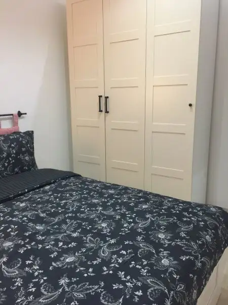 Yatak odam eski evimde 18 m2 ydi. 7 kapili gardrop makyaj masasi giyinme bolumu kitaplik... bir suru yer vardi ama bu evde odaya yatagi koydugumuz an oda bitti:) ust kattaki bos bir odayi giyinme odasi yapmayi dusundum ams in cik zorlayacagi icin sigdigi kadar buraya koymays calistim. Oyleki odanin kapisi dahi kapanmiyordu yatak yuzunden, kapiyi akordiona cevirdik ki acip kapanabilsin.