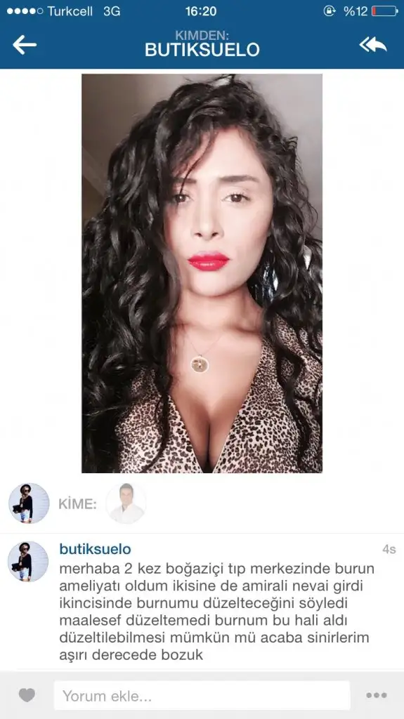 Evet canim burnumun durumu bu yamukluklar nefes problemleri vs gibi seylerden bahsetmiyorum bile bu iz oyle psikolojimi bozdu ki disari cikmak istemiyorum ,fondoten vs bile kapatmiyor hakkimi mahkeme yoluyla arayacagim baska kimse magdur olmasin diye foto paylasmaliyiz baska magdurlarda illaki vardir yalniz olmadiklarini bilip burda paylassinlar