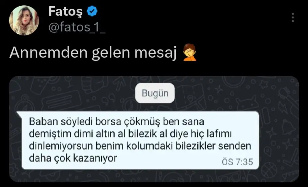 ELbetteki olacak dusus iste devre kesecek cakilacak vs vs ama savas olma ihtimali ve bizim bu savasa dahil olabilecek olmamiz soru isareti.yoksa gercekten dusus benim icin firsattir.alacak paramda yoksa beklemek en iyi seydir.ama olabilecek senaryolar ?vatanimizin bekasi herseyden once gelir.parasida bos puluda. Biz kucuk yatirimcilar saniyorumki hep bu dusuncedeyiz.ama katil balinalar?Çok büyük bı param yok borsada ama benim için büyük açıkçası şuan borsada olan herkes bende dahil uzun vadeciyiz diyerek acaba kendimizi mi teselli ediyoruz diyorum yani grafikler bilançolar analizler falan sanki çöpe gitmiş hiç birşeye yaramamış gbi hissettim bugün.Bende planlı olduğunu dusunuyorum sizin gibi peki ya gerçekten bu planliysa ve yurusyus savaş enflasyon vs herşeyde tepe taklak olacaksak neyin uzun vadesi bu beklemek hâlâ yatırmak mantıklı mi die düşünmeden edemiyorum.cok uzun zmandir altın da alıyorum online işlemlerden güzelde kâr yaptım ama galiba borsa dan nefret geldi bugün bana bütün hevesim kaçtı düşüş olduğu için değil saçma bir düşüs olduğunu düşündüğüm için