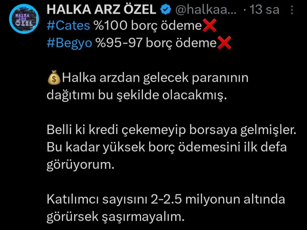 Mantik olarak ben de sizin dediginiz gibi dusunuyordum fakat halka arz zamanlarinda asiri bir yogunluk oluyor dedim acaba ekstra bir durum mu oluyorYani borsaya yeni giren sirket diyebiliriz. Halka aciliyor yani.