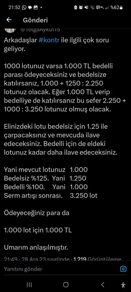 Dediğiniz gibi ufak bi miktarda olsa temettü bi sevindiriyor beni de. Ama acaba bi hisseden gerçekten kar etmek için yüklüce mi elimde olması lazım bilemiyorum. Almak istediğim bikaç hisse daha var aslında. Onları da aldıktan sonra yeni yıl için elimdeki hisseleri arttırmak hedefim olacak galiba. Başka hisseler cezbetmezse tabiBen de bir ara böyle kararsız kalmıştım. Aslında temettü yatırımcısı mı olmak istiyorsunuz yoksa buna o kadar önem vermiyor arada 3-5 de temettü yatsın onlarla da başka birkaç hisse alayım mı diyorsunuz? Yani hangi düşünce tarzı sizi daha motive eder ona karar verseniz yeter ☺ Bana bugün cüzi bir miktar Gwind temettüsü yatmış mesela. Sevindim, motive olmamı sağladı, yarın onunla 4 tane altıns1 hissesi alıcam. Sürpriz olarak gelen ufak bir tutar bile insanın takip etmesini sağlıyor, o yüzden de mantıklı.