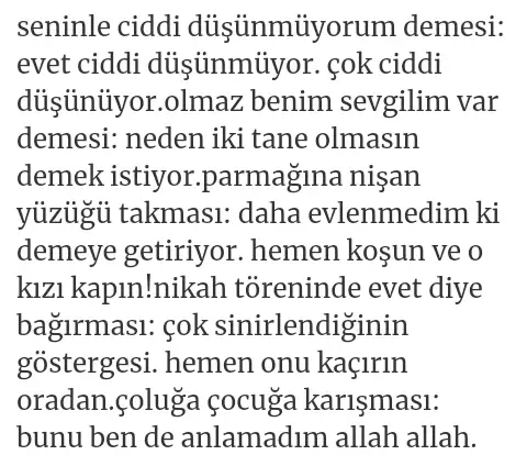 Aslında kendi asosyal olduğu için, benim onu sosyalleştirmemi istiyor. Hem çalışayım, hem evin tüm sorumluluğunu alayım, hem adamı eğlendireyim, hiççç evde bi tarafımı devirip dinlenmeyeyim, ha bu arada o işkolik işine önemi versin geç gelsin ben de o arada gene kendimi eğlendireyim, cinsellik o istediği zamanda olsun, onun canı istemiyorsa olmasın...