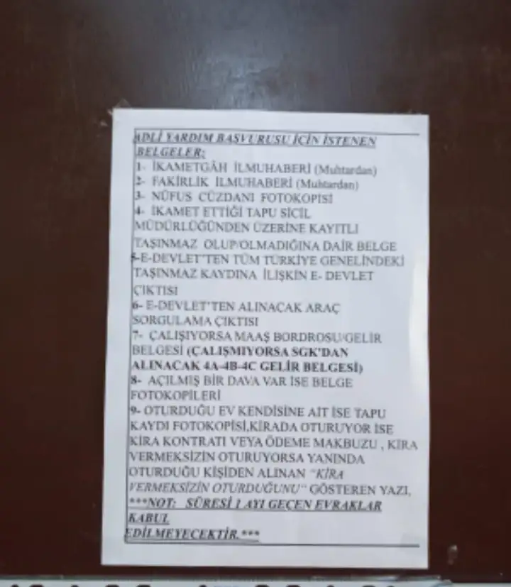 En sağlıklısı baroya sormanız, ben çok çok eskiden stajyerken baroda görev vermişlerdi adli yardım başvurularını almak vatandaşı yönlendirmek gibi, oradan aklımda kalmış. Yanlış bir yönlendirme olmasınHangi kurumlar Ve ne gibi yazılar ?