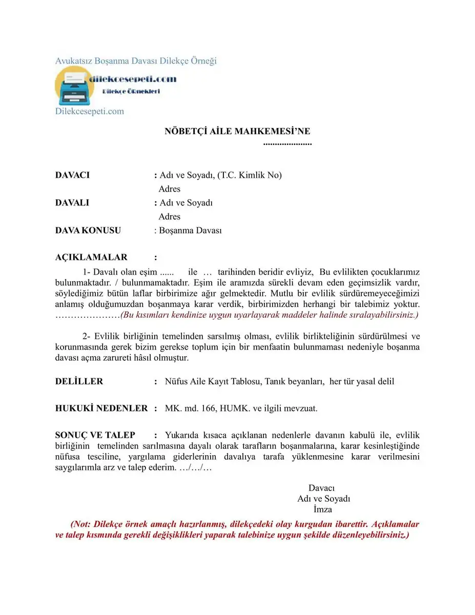 Bir de avukat arkadaşlar varsa çocuksuz,hiçbir talep olmadan bir boşanma dilekçesi ve protokolü örneğinde bana yardımcı olabilirler mi?