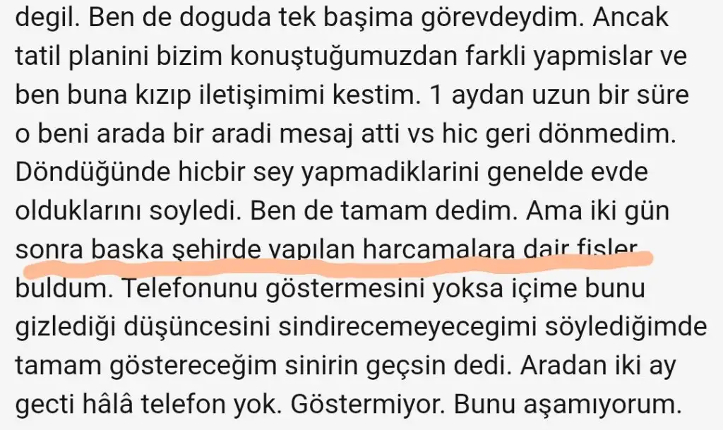 Konunuzun tamamını okumaya çalışıyorum. Boşandığınız anda hayatında biri olduğu ortaya çıkacak zaten. Ya sık sık şehir dışına çıkacak ya da 3.şahıs o şehre gelecek. Boşa strese girmeyin. Ben şu uçak kaçırma meselesine fena takıldım. Eşinize uçak bedava sanırım kısa süreler için biletler alıp uçak kaçıracak kadar gevşek olduğuna göre. Bir uçak bileti olmuş 2 3 bin. Ayrıca hasta insan birinizin telefonunu bari açardı hasta yatağından, çok hastayım yerimden kalkamıyorum diye.Oyle dedi iste. Hasta oldugu icin sabah yetisememis, yalan tabii ki.