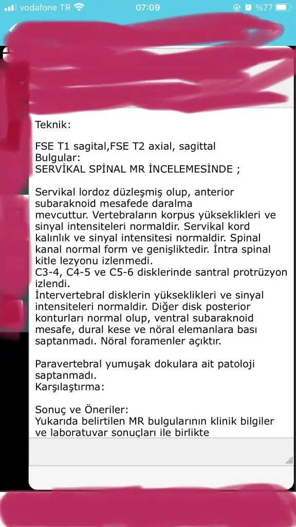 Seninki gene hareket vermiş benim ki boyun hareketleri yap dedi ama hareket ne göstermedi bile saniyelik sadece..bende de yıllardır var malesefHareket verdi doktor cnm bunları yap dedi rulonşeklinde jel verdi birde agrı kesici fizik önermedi .