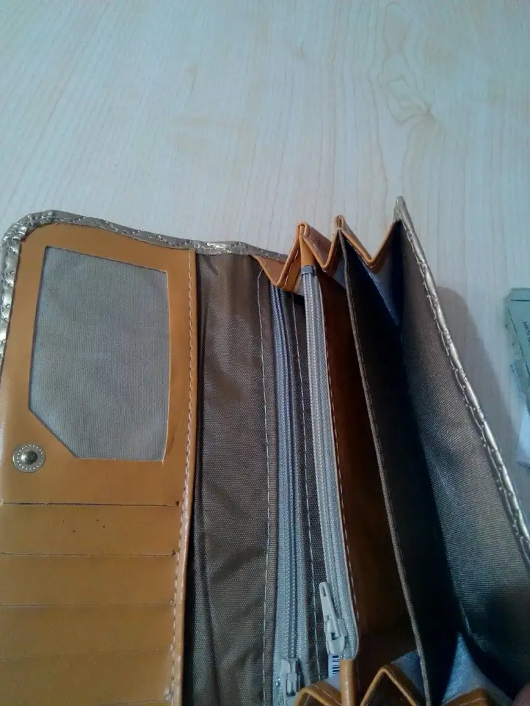 Tarz bir cüzdan, iyi bir fiyata almıştım kısa bir süre kullandım, haki renginde ve kumaştır. Detayları aşağıdaki fotolarda 10 TL