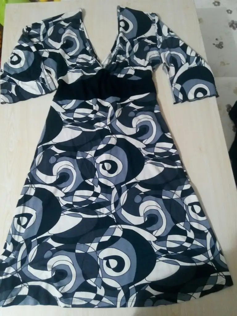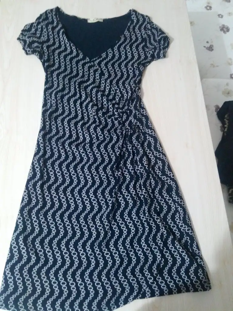 M beden elbise bel kısmında büzgü detayı var likrali kumaş 7,5 TL