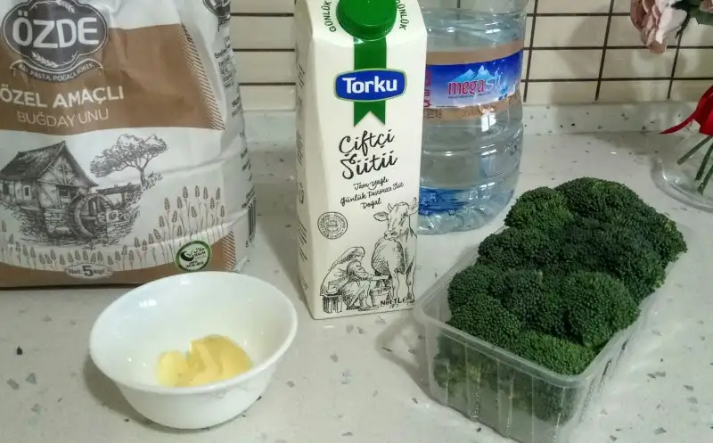 Basamel sos gibi bir kıvam alan harca 1 litre kadar su ekliyoruz. (Eğer brokoliyi direkt suda haşladıysanız o suyu da koyabilirsiniz.) Haşlanan brokoliyi de içine katıp 5 dakika kaynatıyoruz. Tuzunu katıp blenderdan geçiriyoruz. Daha koyu kıvamlı olmasını isterseniz 5 dakika da bu şekilde kaynatabilirsiniz.