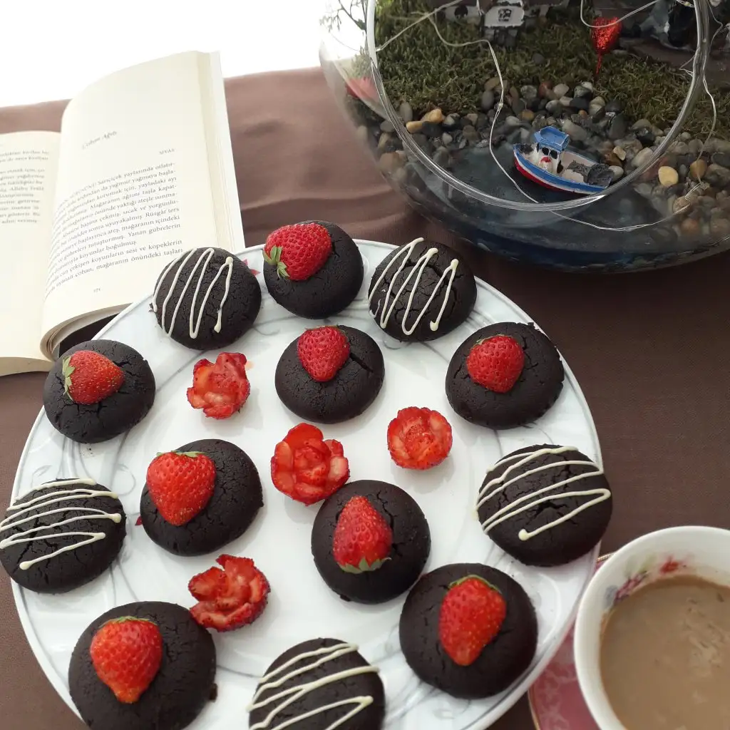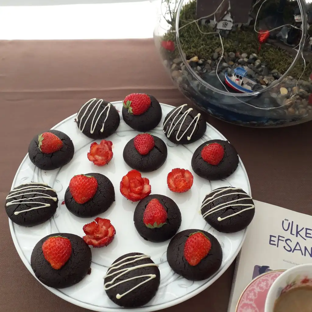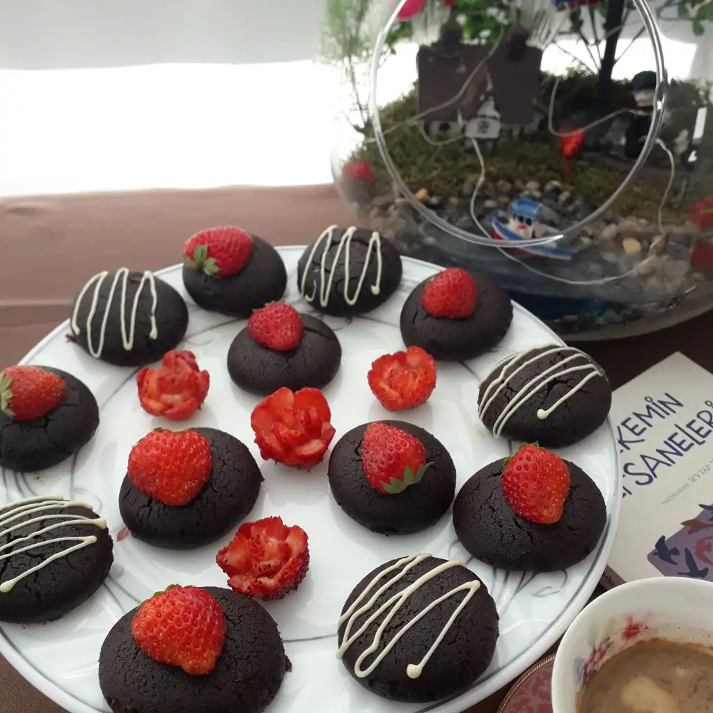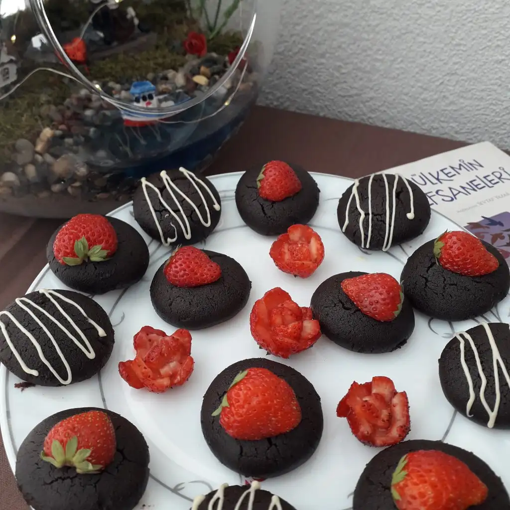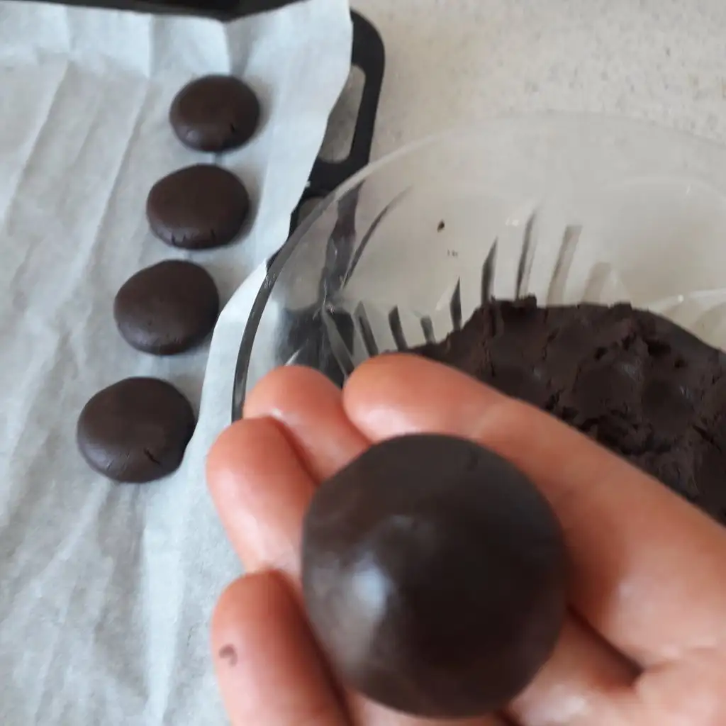 kuru malzemeleri ekliyoruz kakao ,şekerli vanilin, kabartma tozu ve unu yoğurmaya başlıyoruz ele yapışmayan yumuşak bir hamur olunca ceviz büyüklüğünde yuvarlayıp şekil veriyoruz