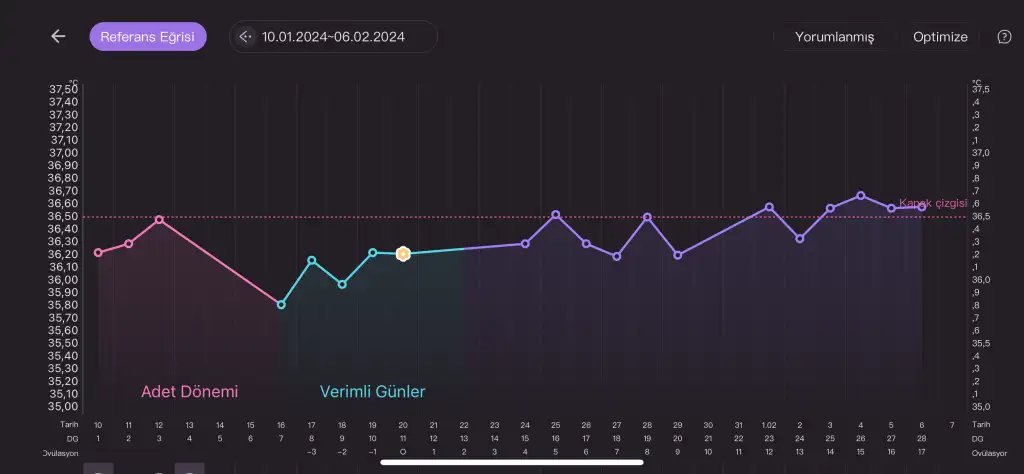 Canım erken yumurtladım bu ay 11. Gün testim pik yaptı sonrasında progesterone baktırdım o da 10.48 çıktı. Bak son üç döngümün ısısı burada. Kırmızı tek olan bu döngüm 18. Gündeyim şuan. Mor tek grafikte kaçıncı günüm olduğu yazıyor 🫶🏻🤲🏻