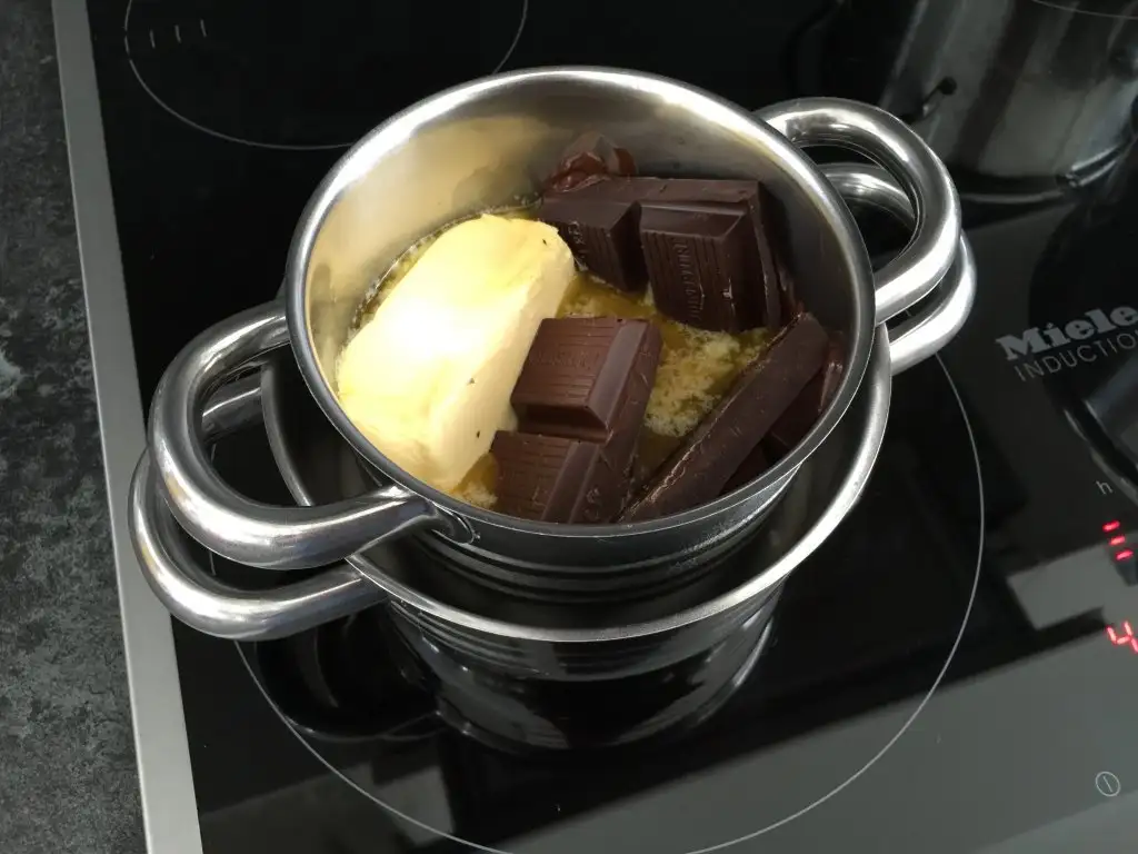 Oncelıkle cıkolata ve tereyagını benmarı usulu erıtıyoruz