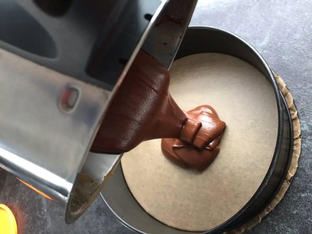 Eki Görüntüle 1487947 Eki Görüntüle 1487952 en son dıger malzemelerıde ekleyıp kekten daha koyu kıvamlı hamurumuzu 26 cm kelepcelı kalıba dokuyoruz(ıcıne fırın kagıdı koyuyoruz)