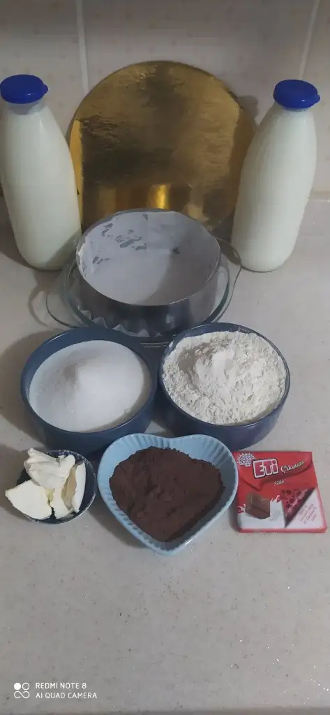 Ben iki kişi olduğumuz için tüm malzemeleri yarıya indirip küçük kalıp ile yaptım.Önceliklelikle puding için gerekli olan süt, un, şeker, tereyağı, vanilya ve kakao, derin bir tencere içerisine alınıp, tel çırpıcı ile karıştırılır.Elde edilen karışım ocağın üzerine alınıp, sürekli karıştırarak, koyulaşıncaya kadar pişirilir.