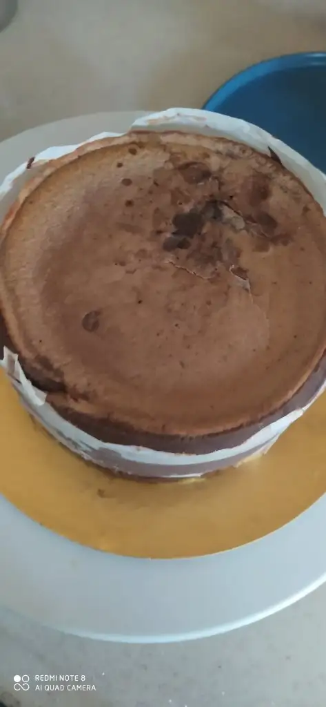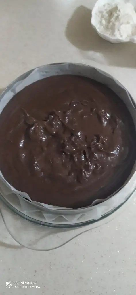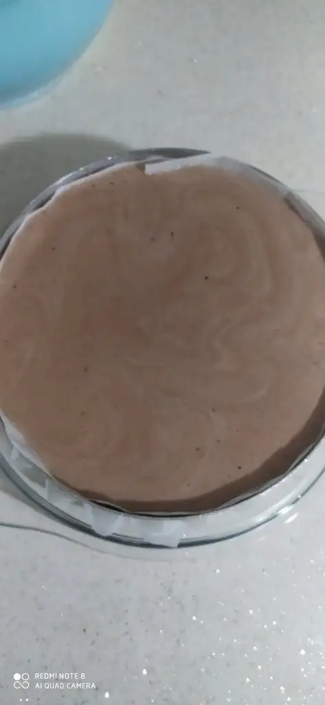 Hazırlanan browni harcı, kalıp içerisinde soğuyan pudingin üzerine dökülür ve eşit şekilde yaydırılır.