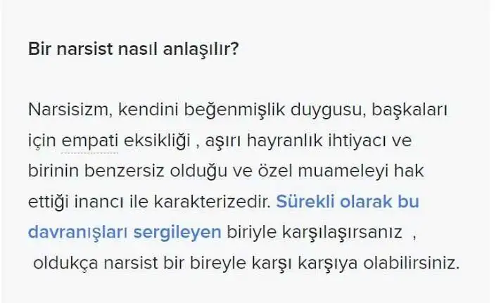 Aynı şeyi düşündüm, hadi bende deyim narsistHahahahah. Narsist dicem ama psikologlar sey dicek simdi "siz kimsiniz de teshis koyuyosunuz"atin nisani atin kurtulunnnn acilen