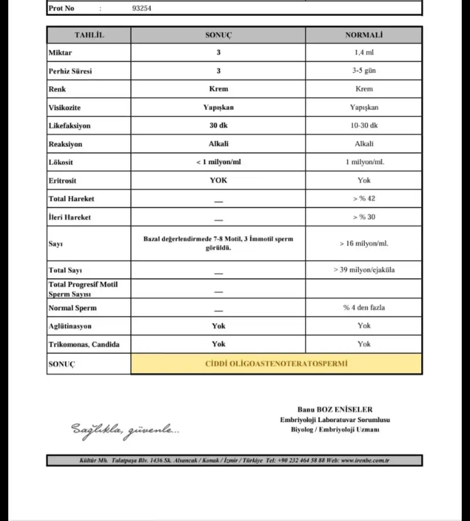 biz tüp bebek denedik embriyo transfer edilmeden öldü 5 gün yaşamadı arest oldu yani. Eşimdede solda 3. derece vrikosel mevcut. üroloji doktoru ameliyat sonrası deneyin dedi tedaviyi. Belkide ameliyattan sonra normal gebelik oluşacak dedi.Varikoselin ileri olup olmama durumuna bağlı. Eğer eşiniz de ağrı şikayeti yoksa çift taraflı değilse doktorlar ameliyata pek sıcak bakmıyor. Varikosel ameliyatı çok basit bir ameliyat ama kişinin sperm sayısının çoğalması 6 ay-1 sene sonra normale dönüyor. Yani doktorunuz sizi acilen tüp bebek tedavisine alabilir. Öyle de görünüyor.