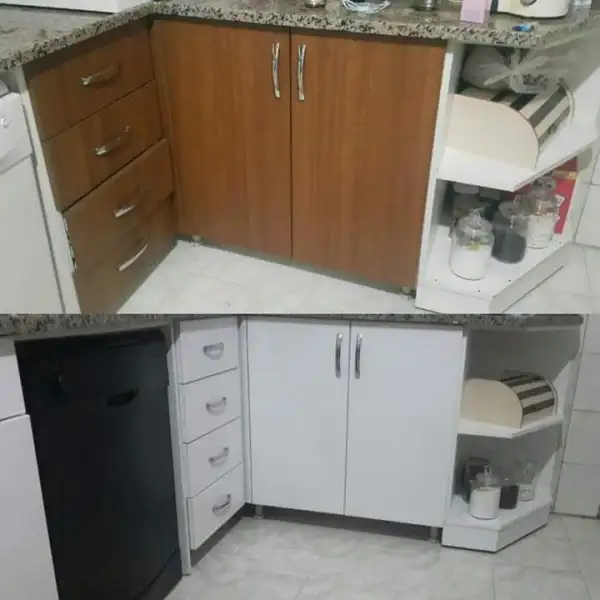 Haşere ilaçlama şirketiyle bir konusun derim.Hani onların cihazları var ya çok ince uzun motorlu birşey.Dolabin arkasına girer o çubuk gibi şey bence oradaki pisligi içine çeker bir nevi vakumlar sonra da ilâçlarlar.